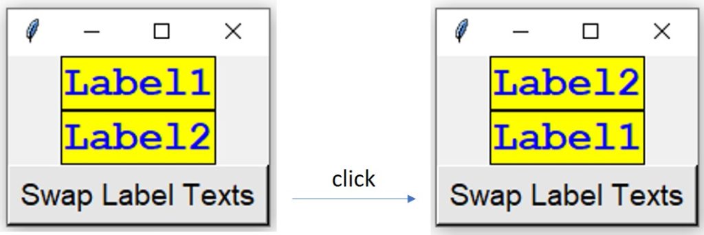 The goal is to build an application with a graphical user interface (GUI) that allows you to swap the text of two labels by pressing a button. You can see a possible implementation below. Here, the partial() function is used in two places. Detailed comments help you understand how it works and why it is used in those specific places.